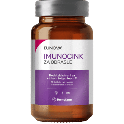 Imunocink za odrasle sadrži 10 mg cinka i 300 mg vitamina C u obliku tableta za žvakanje, prijatnog ukusa narandže.
